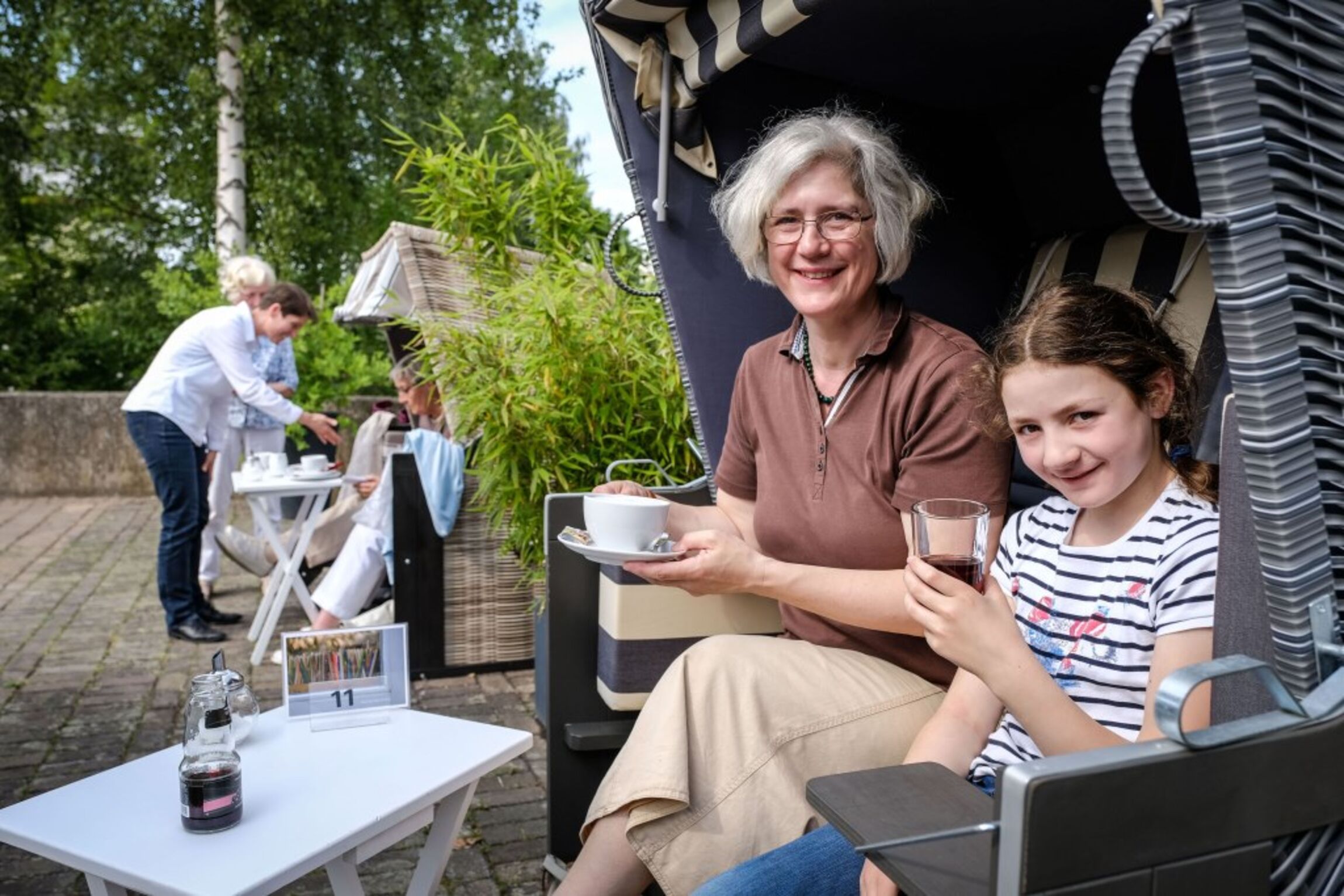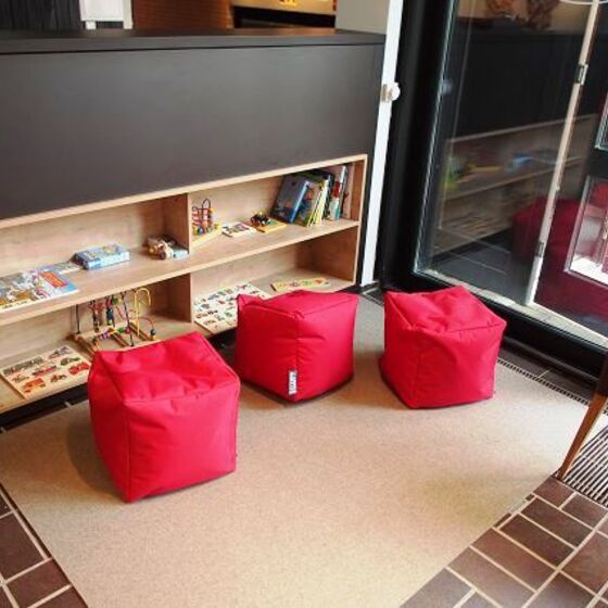 Neben einer Kinderspielecke, einem Lounge-Bereich, Barhockern am Tresen, weiteren gemütlichen Sitzmöglichkeiten lädt unsere “lange Tafel“ zum Verweilen ein. Hier finden zwischen 12 und 16 Personen Platz.